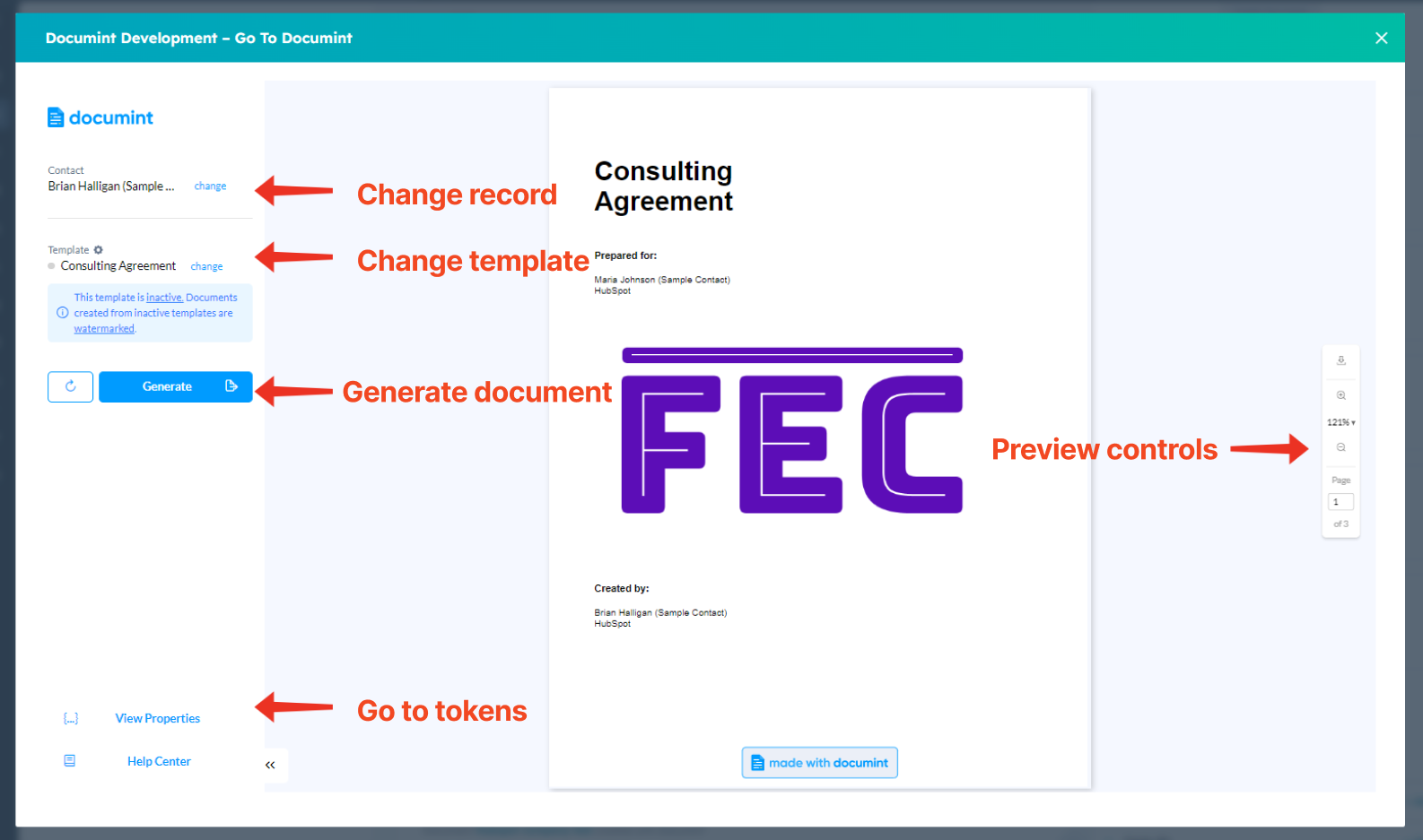 This is the dashboard. Here you will be able to select a record, change your template, view your document preview, and generate your document among other things.