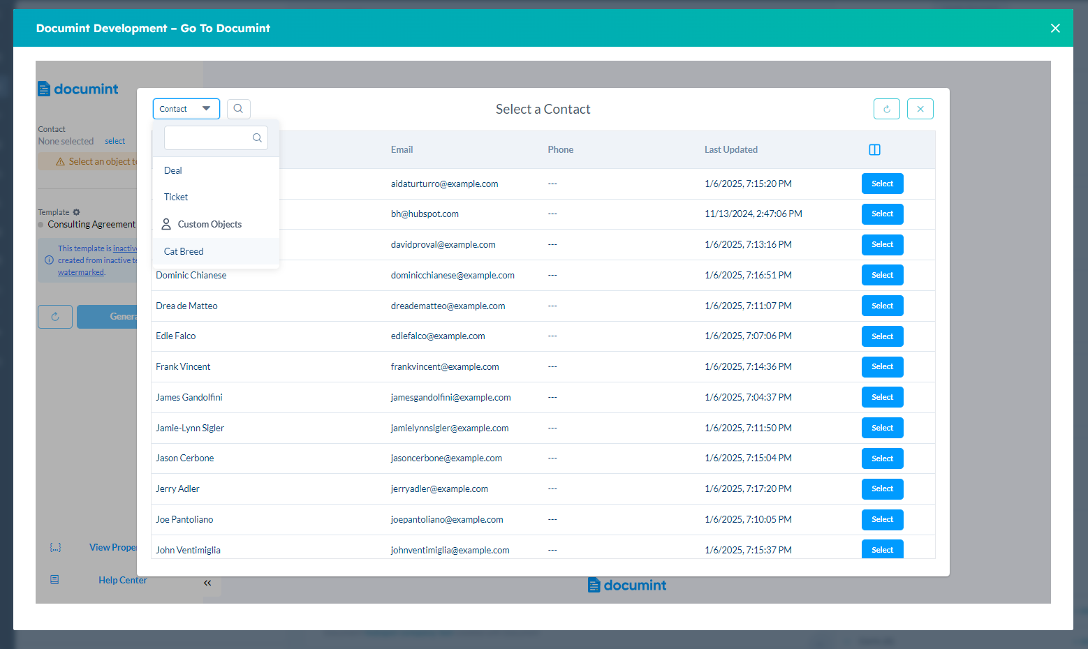 <figure><img src="https://1903534506-files.gitbook.io/~/files/v0/b/gitbook-x-prod.appspot.com/o/spaces%2FTY5wPd81K7B5rjyG5tjS%2Fuploads%2FqlDlzZYknDctCxqhG7nW%2Fobject%20type%20dropdown%20open.png?alt=media&#x26;token=a4df4325-abbf-4095-8b15-d19801ebbed3" alt=""><figcaption><p>The record selection overlay also provides tools to search and filter records.</p></figcaption></figure>